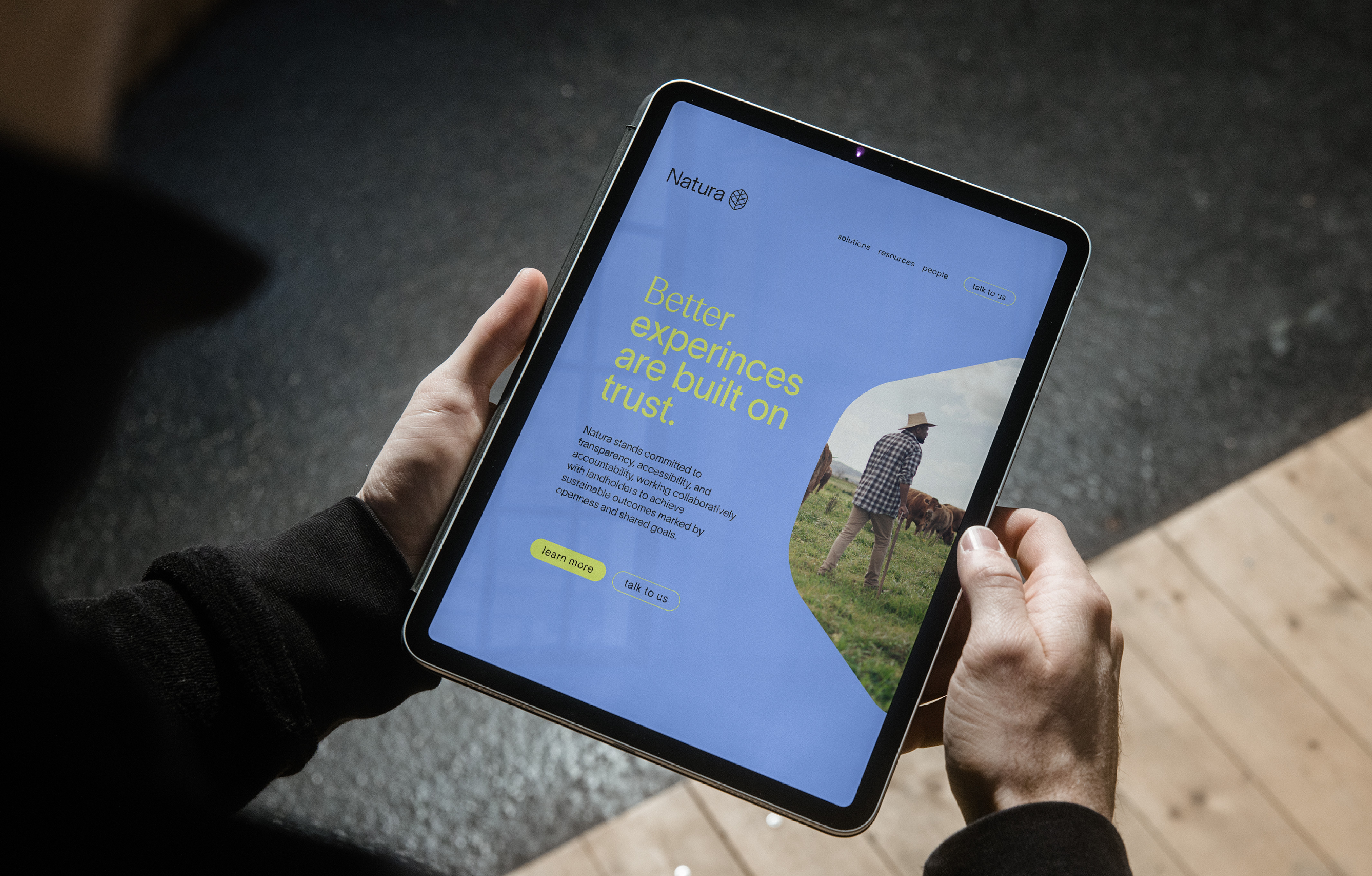 Natura is a down to earth climate-conscious funder based in regional Australia, with a global commitment to empowering landholders with greater access to capital to enable high-integrity environmental projects to thrive. We developed a brand identity that reflects these values – climate-conscious, future-focused, and grounded in trust. At its heart is a custom leaf icon: organic and approachable, symbolising Natura’s connection to the land, yet structured with an industrial edge to convey stability and reliability. A visual balance of nature and innovation, just like the brand itself.