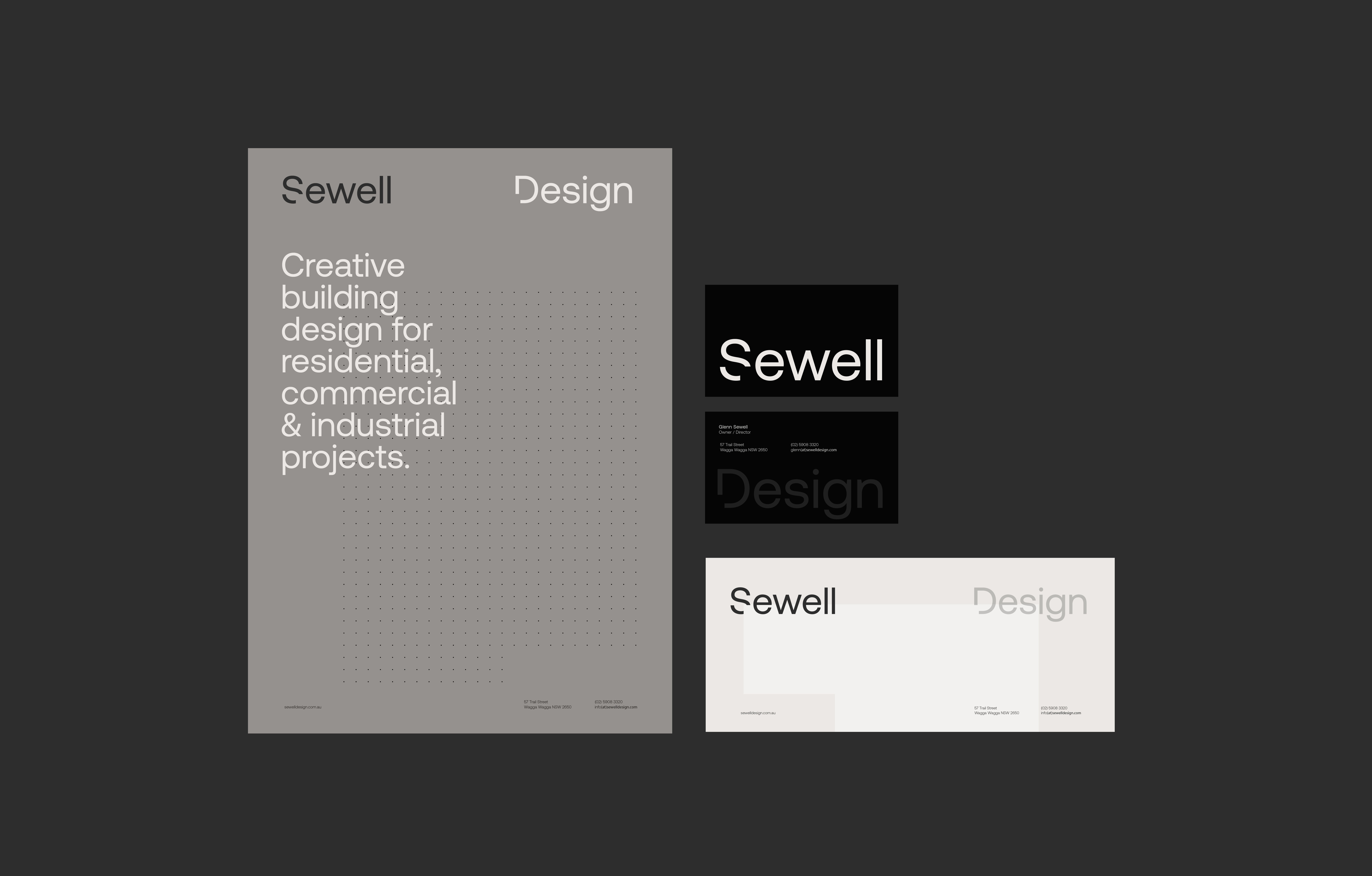 Sewell Design is a creative architectural studio focused on sustainable, practical design. We were brought on to revitalise Sewell Design’s brand identity and create a cohesive suite of internal documentation that would better reflect their evolving style and contemporary architectural direction. Taking inspiration from the studio’s structural sensibilities and spatial thinking, we developed a bold, geometric logomark that plays with form, scale, and negative space. The refreshed identity was rolled out across key touchpoints, including business stationery, project documentation, digital platforms, and signage ensuring consistency and professionalism at every level of communication. The result is a strong, unified brand that lays the foundation for Sewell Design’s next chapter as they continue to build, innovate, and inspire through architecture.